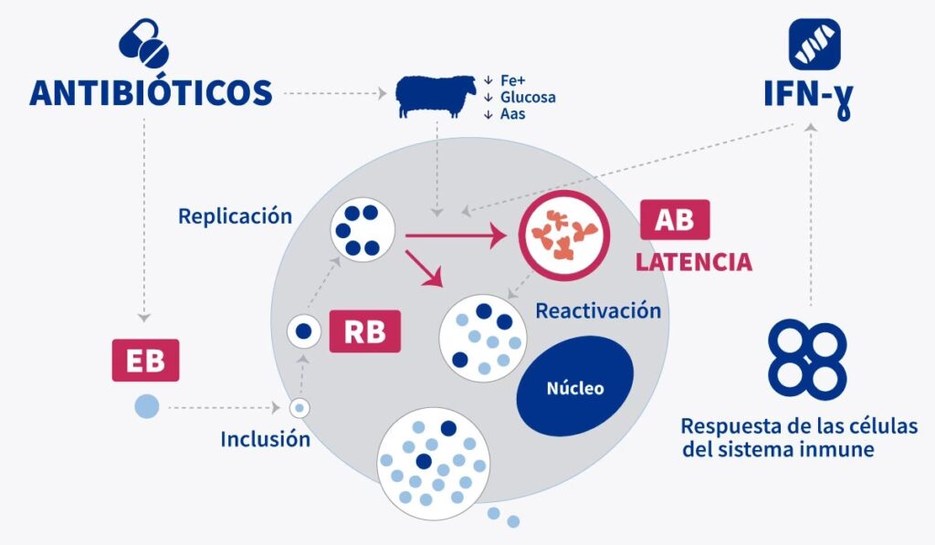 - Transmisión Vertical: En algunas especies, se ha documentado la transmisión de la madre a la descendencia durante el parto (como en humanos con C. trachomatis y en aves con C. psittaci). Aunque no se especifica para conejos en la fuente, es una vía de transmisión posible a considerar en un entorno de cría.