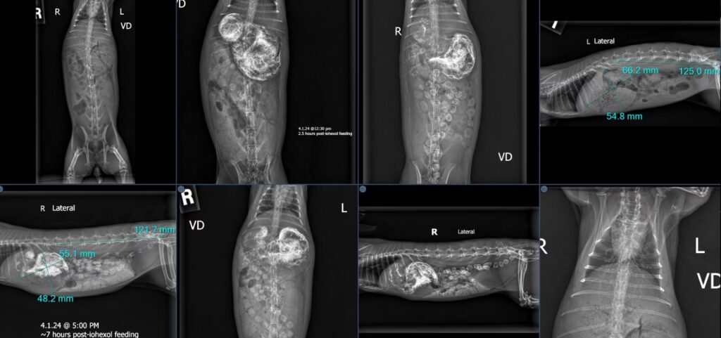 - Radiografías: Una radiografía abdominal es una herramienta diagnóstica muy útil. Permite visualizar la cantidad de gas y contenido en el estómago e intestinos, ayudar a diferenciar entre estasis funcional y una posible obstrucción física, y a veces identificar la causa subyacente (como problemas dentales o cálculos en la vejiga).