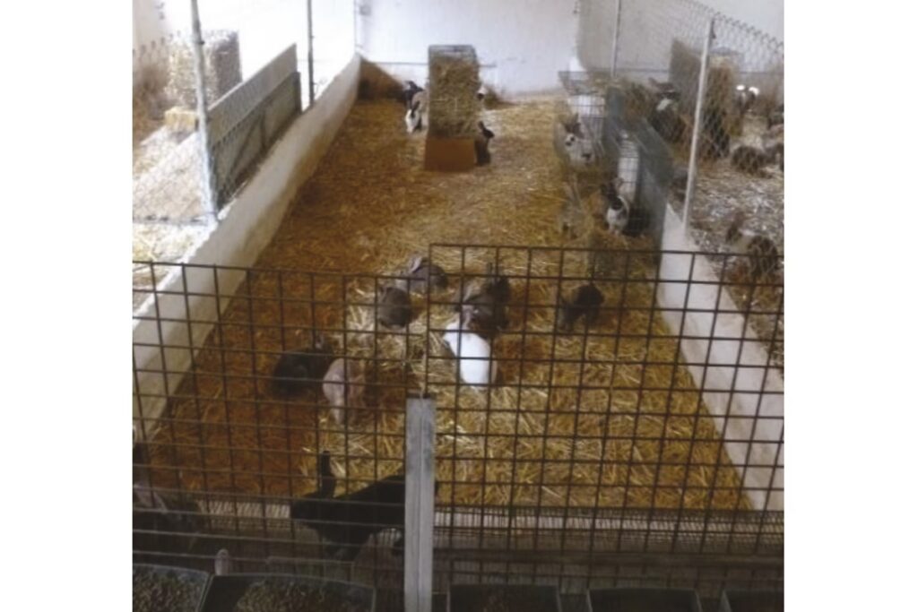 - Conejos próximos al sacrificio (aprox. 2.5 kg): Alrededor de 0.1 m² por conejo.